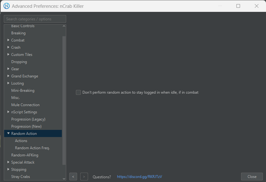 Naton 1072 Posted August 31, 2018 Author Share Posted August 31, 2018 4 minutes ago, DiAngush said: I assume roaming runs around the specified area (in squares) around my set position. I just missed the disclaimer in crashing tab, that it'd crash people and disregard my preference to not crash. Sort of like, roam around, but if my main position was occupied, I'd hop worlds. Now I realise that might be hell to code I’ll add in a one line explanation of roaming in the GUI, thanks Quote View all nScripts on the TRiBot store! (premium) (free) nScripts have gathered 15T+ Profit and 2.5T+ Experience over 8K+ years of Runtime! Need Assistance? Join our Discord. Link to comment Share on other sites More sharing options...